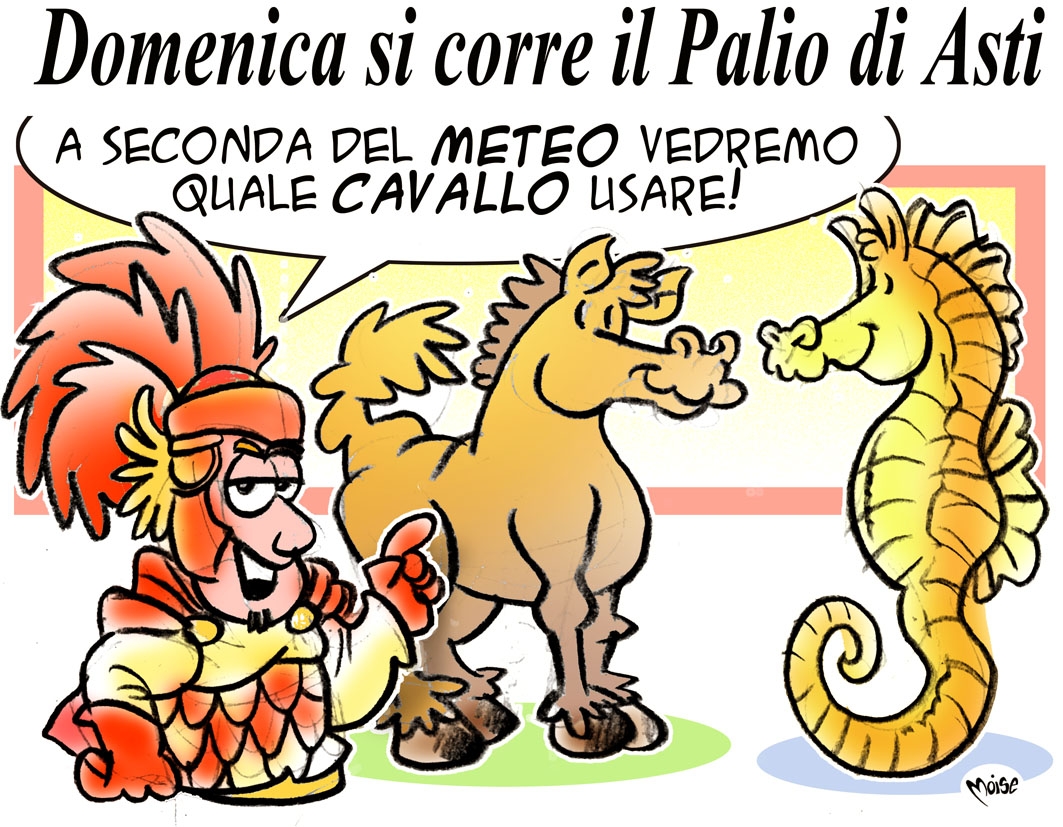 Ciao a todos! Nell’imminenza dell’annuale Certame Ippico Astigiano mi è venuta in capo questa vignettina “meteo-paliofila”…