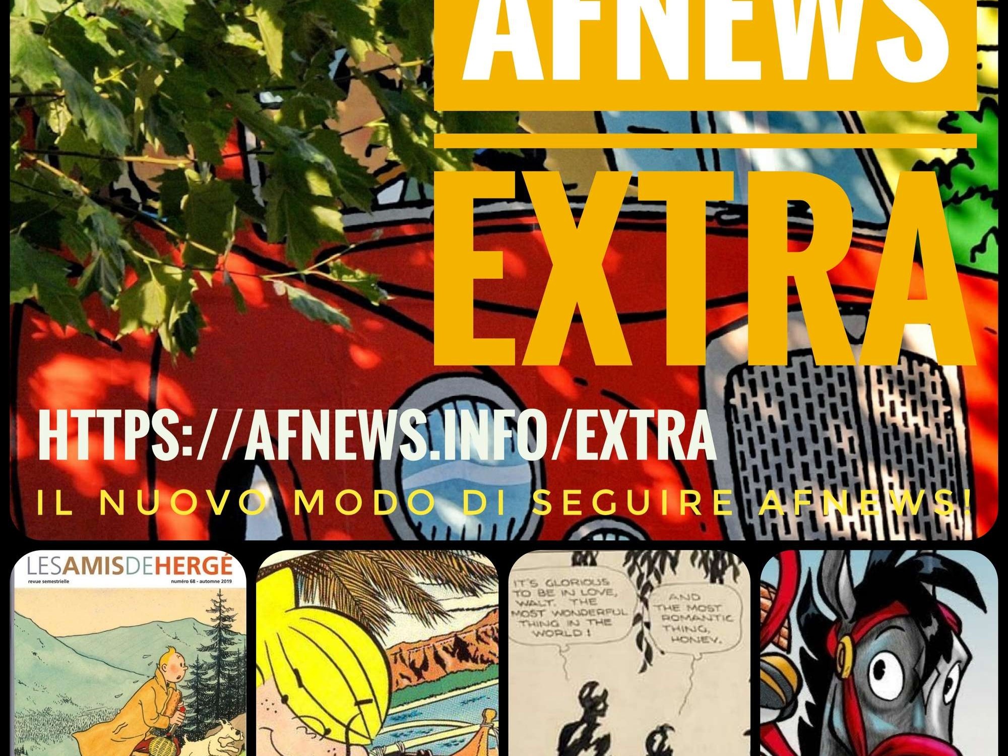 Si tratta di afNews Extra! Una pagina ad hoc (https://afnews.info/extra – http://fumetti.org/extra – https://afnews.info/wordpress/speciali/extra/) in cui trovi tutte le notizie che appaiono nel blog di afNews (il quale, a differenza dei social, è permanente) e, in più, una montagna di Extra notizie e stimoli dal mondo del fumetto e dintorni (cinema, tv ecc.), pubblicate in diretta dalle fonti originarie. Accompagnate da 8 canali video tematici.