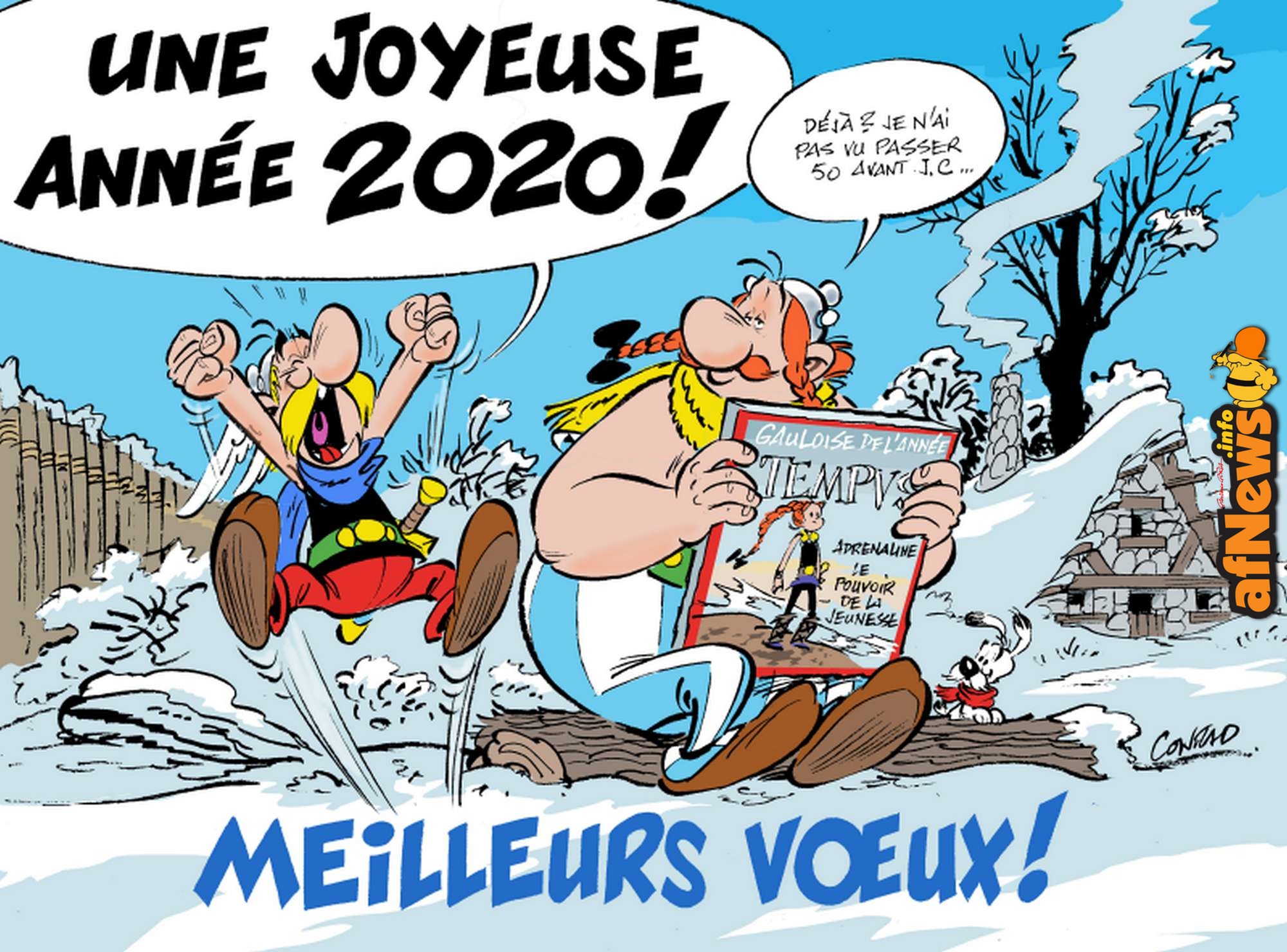 A tous, nous souhaitons une merveilleuse année 2020, que nous plaçons comme la précédente sous le signe de l’humour et de la bonne humeur pour toujours défendre les valeurs de résistance et de tolérance qui sont aux fondements de l’œuvre de Goscinny et Uderzo. Grâce à votre soutien permanent, nous allons continuer cette année à vous offrir de nouvelles surprises dont nous vous parlerons prochainement dans ces colonnes. En attendant, que Toutatis vous protège, vous et vos proches ! Bonne année ! |