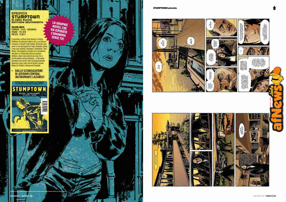 Da oggi 26 febbraio sarà messo in vendita, in Libreria e Fumetteria, per Edizioni BD, il Graphic Novel, “Stumptown “, firmato dallo scrittore, Premio Eisner, Greg Rucka ( Gotham) e da Matthew Southworth che raccoglie in un solo volume la prima indagine della Detective Dex Parios.