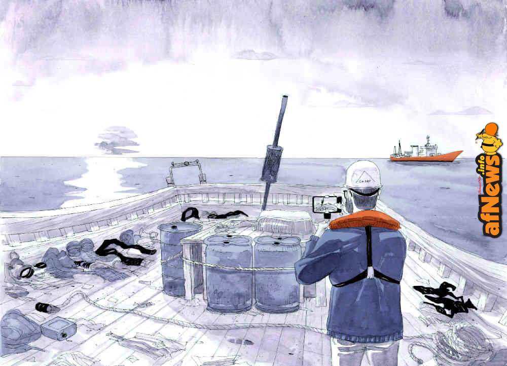 10 novembre 2017, la nave Aquarius è pronta per una nuova missione nel Mediterraneo. Soccorre chi, per disperazione, affronta il mare su gommoni fatiscenti. A bordo per la prima volta ci sono anche due fumettisti. Questo è il loro racconto di chi fugge e di chi salva.