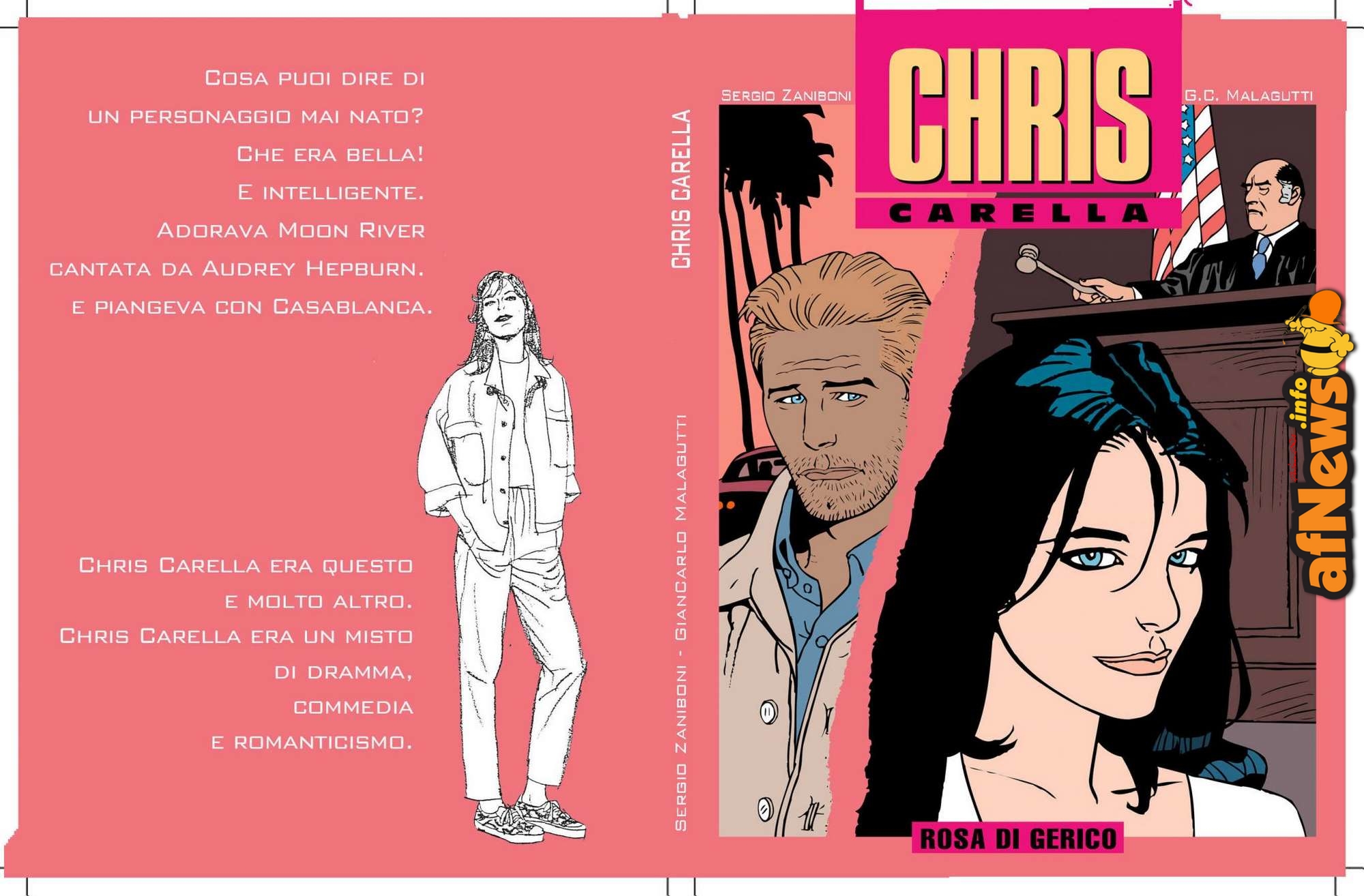 c.s.: “… Abbiamo messo in rete, scaricabile, il fumetto Chris Carella (versione storyboard) sul nostro sito outisfumetti.com nella sezione news. Si tratta di una storia di 100 pagine per cui l’abbiamo divisa in varie puntate. Nell’introduzione ci sono alcune spiegazioni. La storia è di Giancarlo Malagutti e avrebbe dovuto essere illustrata da Sergio Zaniboni. Purtroppo il destino ha deciso diversamente. Se però trovassimo un disegnatore all’altezza, chissà, potremmo farla realizzare…”