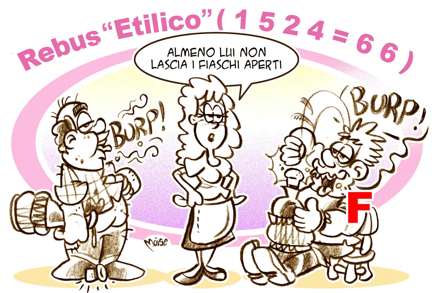 Indulgere all’eccesso ai Piaceri di Bacco è sempre deleterio… ma quando si giunge ai comportamenti decisamente ridicoli dei protagonisti di codesto rebussino è sicuramente consigliabile sostituire agli alcolici – che so? – un bel cesto di 6 6 !