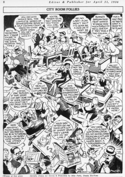 DailyCartoonist: Cartooning the Mid-20th Century Newsroom Cartoonists and other artists, working in newsrooms, captured and caricatured their working lives, including their colleagues, in these places. What follows is a small sample of the images I have gathered in my research for my new book on the history of the American newsroom from the 1920s through the …